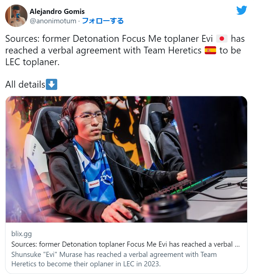 【速報】DFM Evi、LEC挑戦へ 複数メディアが報じる