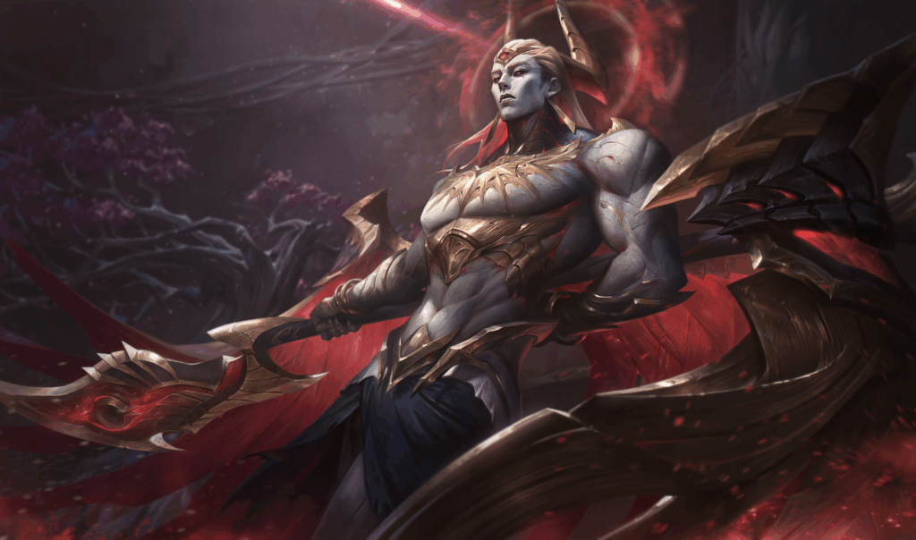 - 敵チャンピオンに対する攻撃およびスキルで「不退転」のスタックを獲得し、スタックごとに攻撃力が増加する。「不退転」が最大スタックになると、さらに攻撃力が増加し、復活できるようになる。